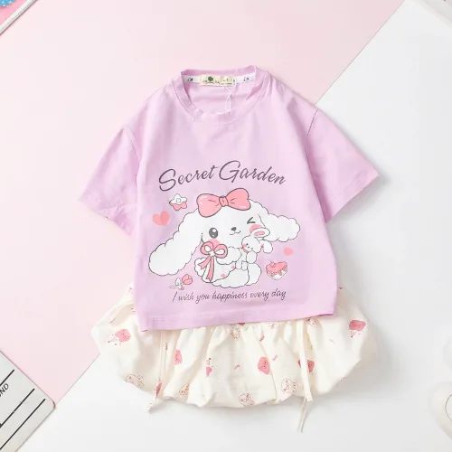 Charming T-shirt and skirt combo with a decorative bow – perfect for trendy little girls.